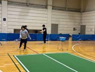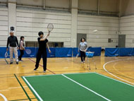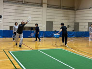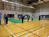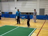 2025年12月25日(木)9:30〜11:30ギオンアリーナ中体育室におきまして、昨年に引き続き『バウンドテニス体験教室』が開催されました。参加者は大人6名、子供1名(小学3年)の7名で2時間バウンドテニスを体験して頂きました。始めはラケットでボールを突く練習から始め短い距離からの球出し、徐々に距離を長くして打球の感覚を覚えて頂いた後は各々講師が入りダブルスの試合が出来るまでになりました。2時間という短い時間での教室でしたがバウンドテニスの楽しさを実感していただけたと思います。最後に協会のパンフレットを配布し近隣の練習会場等の説明させていただき教室を無事に終了することが出来ました。