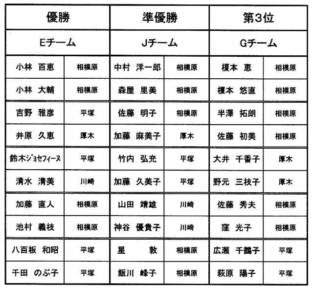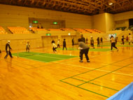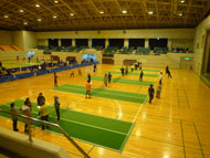 第21回バウンドテニス近隣交流大会がほねごりアリーナに於きまして、神奈川県内より6協会、1個人の計50組(100名)の選手が相模原市に集い盛大に開催されました。市内は勿論、市外から参加の皆さんからも多くのお手伝いを頂き予定よりも早く準備が整い余裕をもって開会することが出来ました。競技方法はダブルス戦とし、受付時に抽選を行い5組(10名)1チームとし、午前の部はチーム内順位決定戦を行い決定順位に従い、午後は得点取得リーグにて得点を稼ぎ取得ゲーム数をチームに持ち帰り合計ポイントをチームの総得点として勝敗を決めました。同日、藤沢市協会でも大会が行われた関係で藤沢市協会員皆さんの参加がなく、大会の盛り上がりに心配はありましたが参加者皆さんのお力添えで大いに盛り上がり大会を終了することが出来ました。お忙しい中、大会参加者の取り纏めを頂きました各市協会事務局の皆様、誠にありがとうございました。