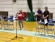 相模原市南地区バウンドテニス親睦大会がギオンアリーナで開催されました。今年度の主幹サークルは谷口BTC・BTCスマイル・山百合の3サークルで実行委員の宮崎さん(谷口)蒔田さん(スマイル)、廣兼さん(山百合)に加えアドバイザーとして関口さん、舟本が加わり大会運営の準備に取り掛かりました。先ずは参加者を募る所から、そして開催要項、景品の調達等と精力的に進めてきました。当日は北地区の常任理事さん、北地区理事さんなど大勢参加して頂き、参加者50名、1チーム10名、5チーム編成で開催する事が出来ました。前半戦は順位決定リーグ戦、後半戦は順位別コートに分かれ得点取得リーグ戦の取得ゲーム数持ち帰りで競い、最後はチーム内全員でBTラリー戦を予定しておりましたが、時間の都合で残念ながら取りやめとなり、後半戦の取得ゲーム数の得点を競い合うチーム戦のみとなりました。しかしながら親睦大会らしい和気藹々、心温まる大会に加えて、閉会式の成績発表で入賞されたチームの豪華な景品、参加賞もまずまずと皆さん大喜びでした。怪我人も出ず無事終了することができました。主幹サークルの皆さん大変お疲れさまでした。 |