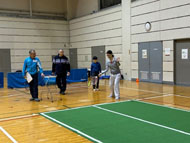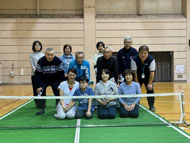 2025年12月25日(木)9:30〜11:30ギオンアリーナ中体育室におきまして、昨年に引き続き『バウンドテニス体験教室』が開催されました。参加者は大人6名、子供1名(小学3年)の7名で2時間バウンドテニスを体験して頂きました。始めはラケットでボールを突く練習から始め短い距離からの球出し、徐々に距離を長くして打球の感覚を覚えて頂いた後は各々講師が入りダブルスの試合が出来るまでになりました。2時間という短い時間での教室でしたがバウンドテニスの楽しさを実感していただけたと思います。最後に協会のパンフレットを配布し近隣の練習会場等の説明させていただき教室を無事に終了することが出来ました。