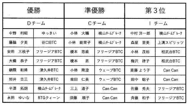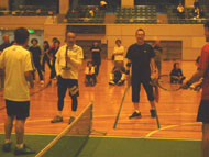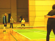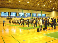 | 第14回ほねごりアリーナバウンドテニス大会が今年もほねごりアリーナにて開催されました。この大会は、指定管理者としてほねごりアリーナを管理運営している総合体育館グループ運営共同事業体(公益財団法人相模原市まち・みどり公社、株式会社フクシ・エンタープライズ)の主催によるもので、市バウンドテニス協会が大会運営の委託を受けて開催しています。今大会は、参加者72名(36ペア)、1チーム8名によるチーム戦で行われ、9チームに分かれてA級・B級それぞれのクラスで6試合を戦いました。試合は総合得点で、2チームが同点となり、サバイバルラリーによる方法で優勝決定戦を行った結果、Dチームが見事に優勝を飾りましたが、最後の最後まで優勝の行方が分からず、大変盛り上がる大会となりました。来年度も同大会を予定しているとの中村ほねごりアリーナ館長のお言葉がありましたが、バウンドテニスの普及・振興に大きく貢献している、ほねごりアリーナバウンドテニス大会を開催して頂いていることに、市バウンドテニス協会としましても、深く感謝申し上げます。 |